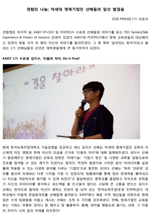 9월에 카이스트와 포스텍 영재기업인교육원의 연합캠프가 진행되었는데요~ 연합캠프에서 진행된 Ted Seniors 스케치입니다.